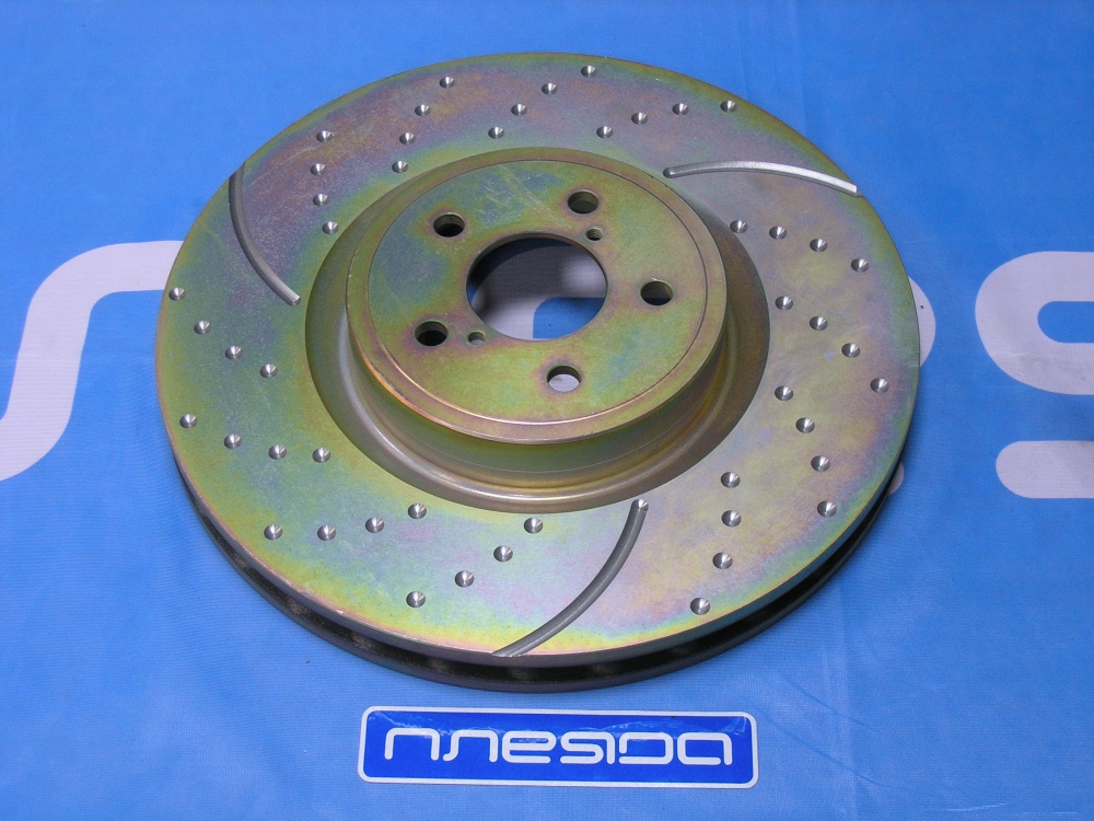 Диск тормозной передний неоригинал (Англия) с тремя насечками и псевдоперфорацией для автомобилей Subaru Impreza STI выпущенных с 2000 по 2005 года